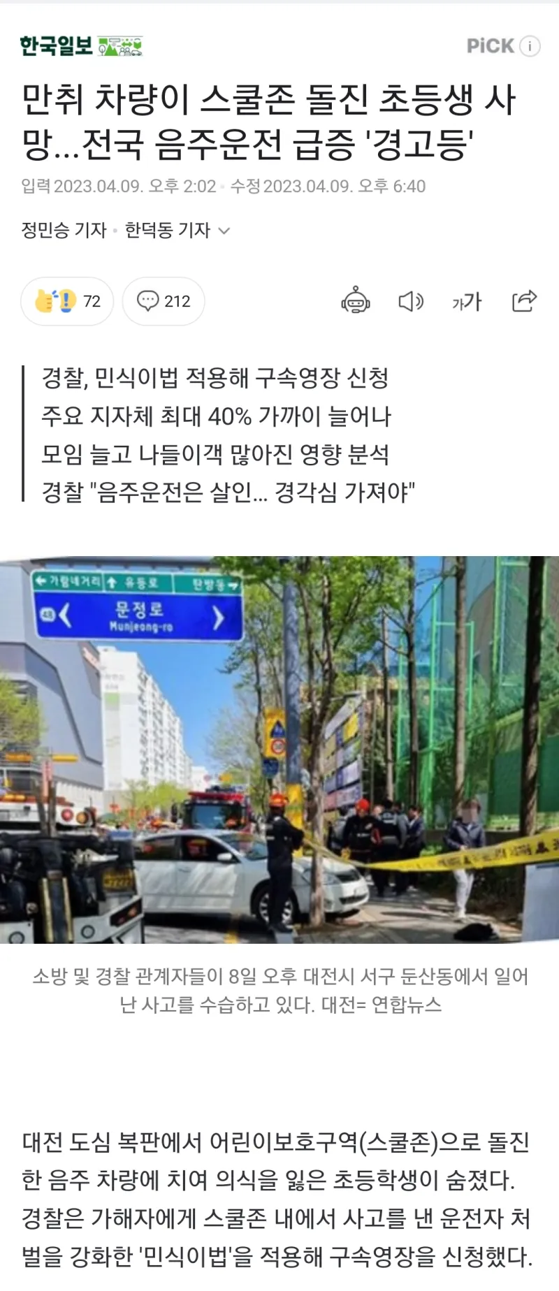 대전 초등생사고 너무 안타깝다