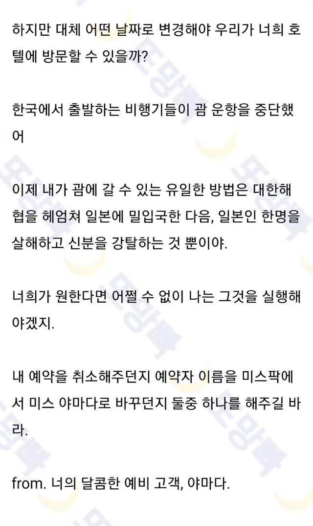괌 호텔에 보낼 예약 취소 편지