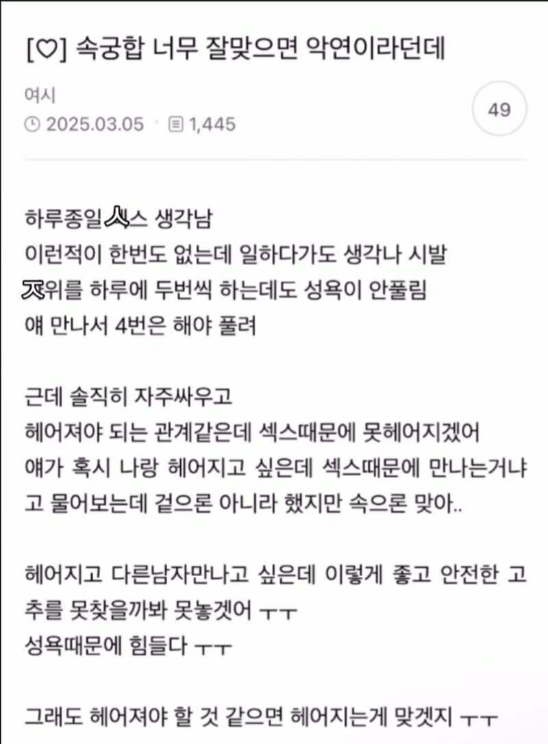 속궁합 너무 잘맞으면 악연이라는데..