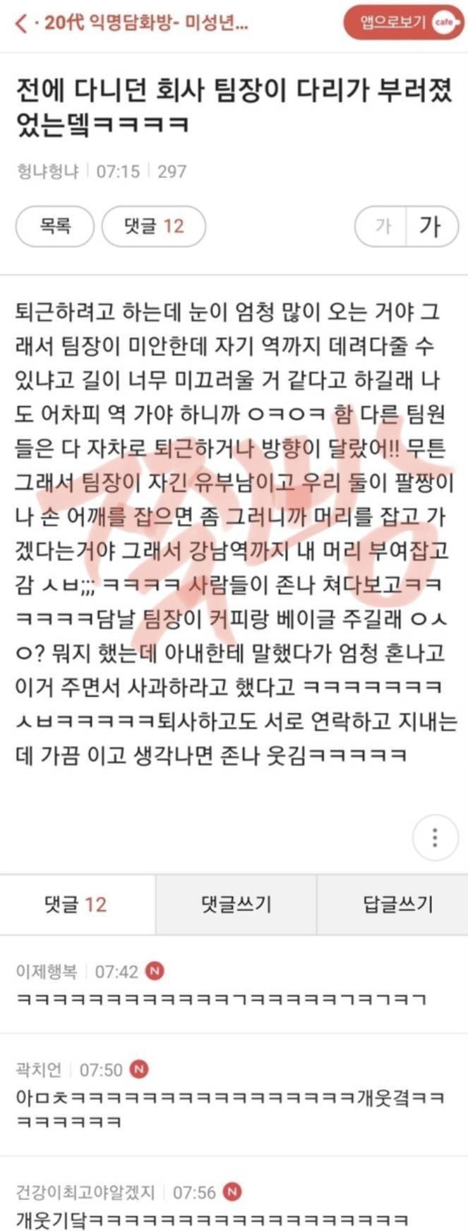 전에 다니던 회사 팀장이 다리가 부러졌었는뎈ㅋㅋㅋㅋ