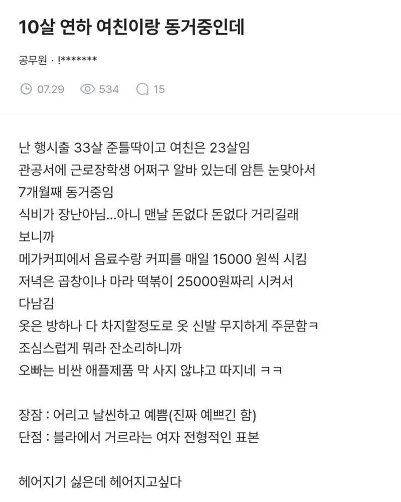 10살 연하 여친이랑 동거중인데