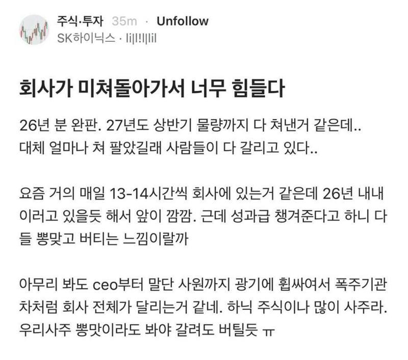 sk하이닉스 직원의 하소연