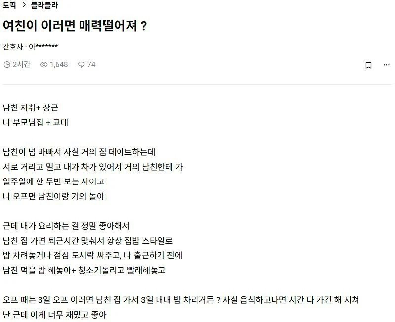 여친이 이러면 매력떨어져
