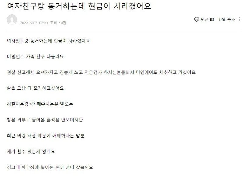 여자친구랑 동거중인데 1억이 없어졌습니다
