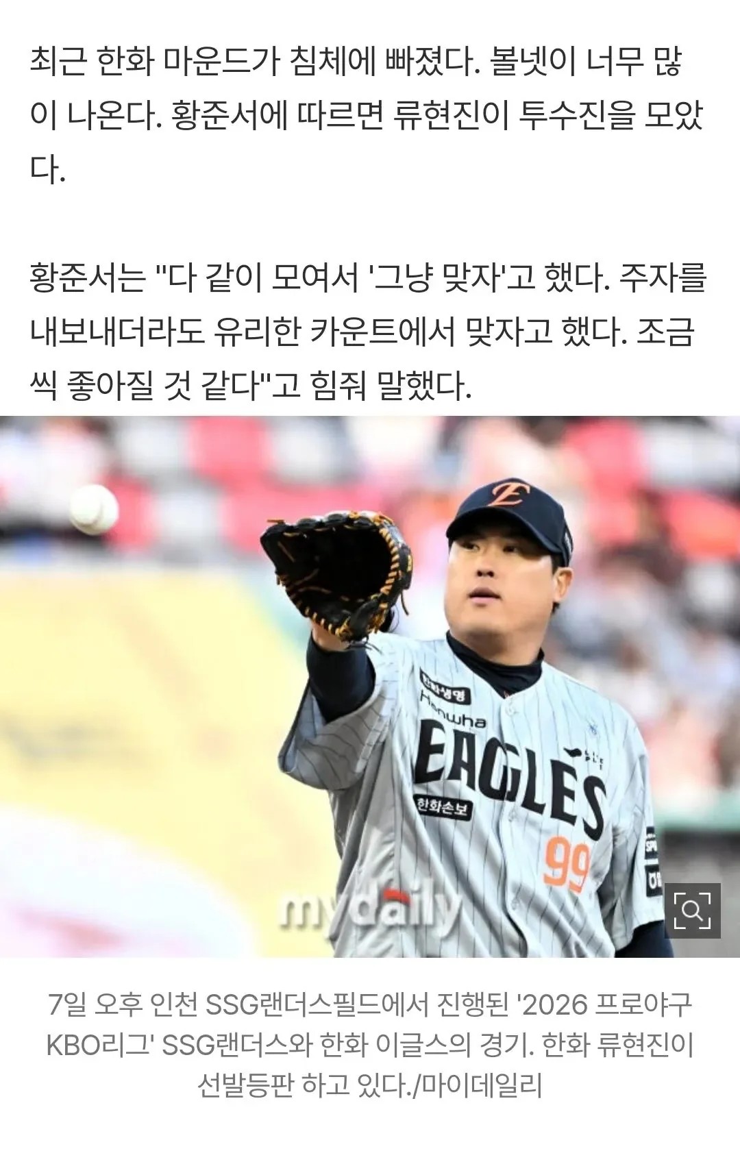 류현진, 투수들 모아놓고 '그냥 맞자'