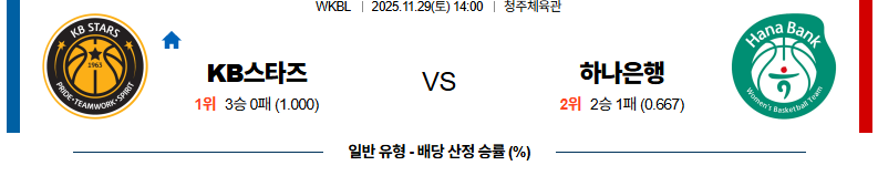 현재 11월29일 KB스타즈:하나은행 WKBL 분석 및 예측 스포츠중계:스포츠무료중계