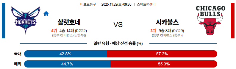 11월29일 샬럿:시카고 NBA 분석 및 예측 스포츠중계:스포츠무료중계