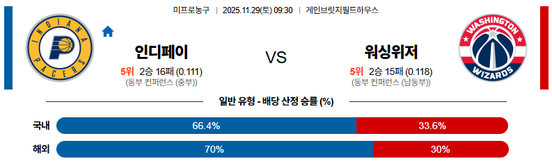 11월29일 인디애나:워싱턴 NBA 분석 및 예측 스포츠중계:스포츠무료중계