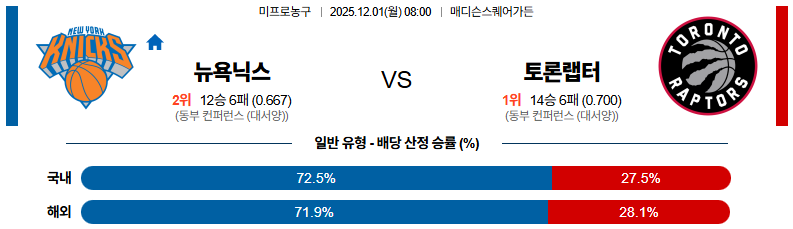 12월01일 뉴욕:토론토 NBA 분석 및 예측 스포츠중계:스포츠무료중계