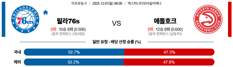 12월01일 필라델피아:애틀랜타 NBA 분석 및 예측 스포츠중계:스포츠무료중계