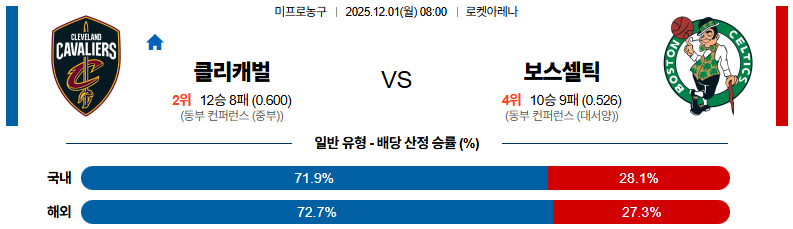 12월01일 클리블랜드:보스턴 NBA 분석 및 예측 스포츠중계:스포츠무료중계