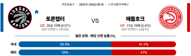 01월04일 토론토:애틀랜타 NBA 분석 및 예측 스포츠중계:스포츠무료중계