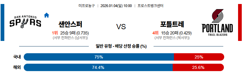 01월04일 샌안토니오:포틀랜드 NBA 분석 및 예측 스포츠중계:스포츠무료중계