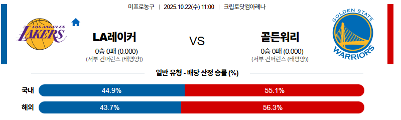 LA레이커스는 타임아웃 이후 전술 설계의 완성도와 리바운드 장악력을 모두 갖춘 팀입니다. 반면 골든스테이트는 커리와 버틀러의 외곽 득점이 흔들리는 순간, 공격 전개가 급격히 무너질 것입니다. 레이커스의 코칭 디테일과 세트플레이 효율이 홈에서 완벽히 작동하며, 경기 리듬을 끝까지 틀어쥘 가능성이 높습니다.