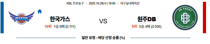 10월29일 대구가스공사:원주DB KBL 분석 및 예측 스포츠중계:스포츠무료중계