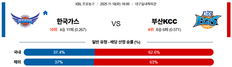 11월18일 대구가스공사:부산KCC KBL 분석 및 예측 스포츠중계:스포츠무료중계