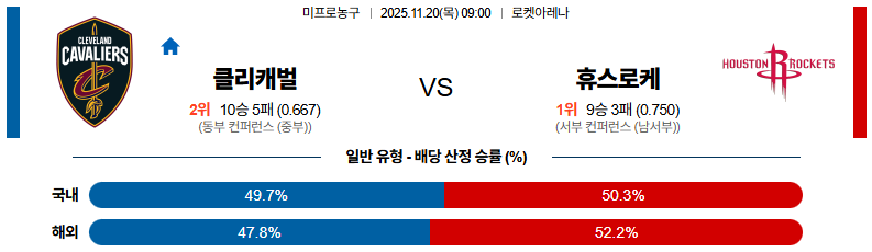 11월20일 클리블랜드:휴스턴 NBA 분석 및 예측 스포츠중계:스포츠무료중계