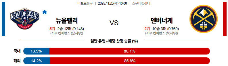 11월20일 뉴올리언스:덴버 NBA 분석 및 예측 스포츠중계:스포츠무료중계