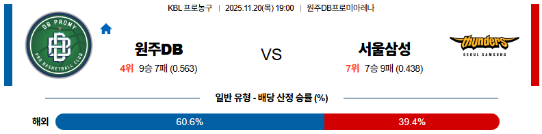 11월20일 원주DB:서울삼성 KBL 분석 및 예측 스포츠중계:스포츠무료중계