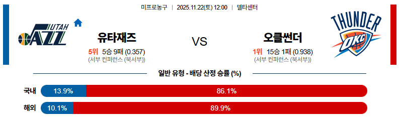 11월22일 유타:오클라호마시티 NBA 분석 및 예측 스포츠중계:스포츠무료중계