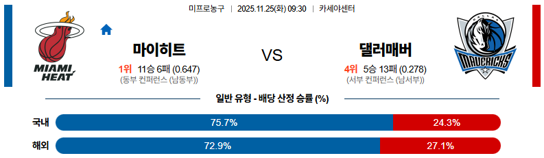 11월25일 마이애미:댈러스 NBA 분석 및 예측 스포츠중계:스포츠무료중계