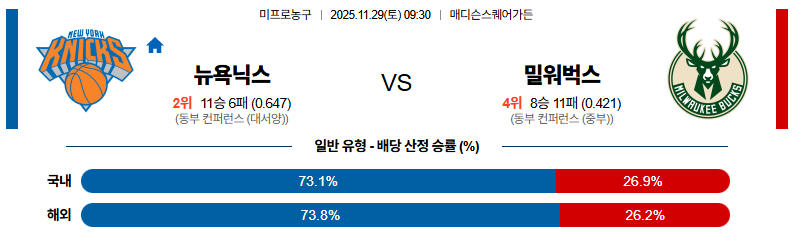 11월29일 뉴욕:밀워키 NBA 분석 및 예측 스포츠중계:스포츠무료중계