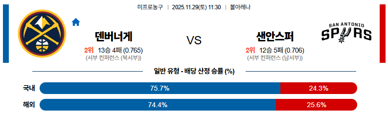 11월29일 덴버:샌안토니오 NBA 분석 및 예측 스포츠중계:스포츠무료중계