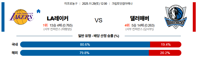 11월29일 LA레이커스:댈러스 NBA 분석 및 예측 스포츠중계:스포츠무료중계