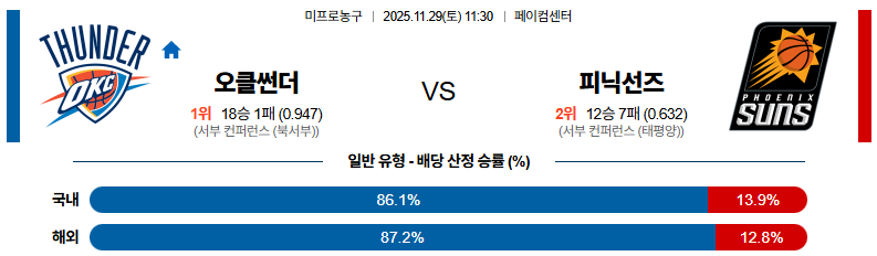 11월29일 오클라호마시티:피닉스 NBA 분석 및 예측 스포츠중계:스포츠무료중계