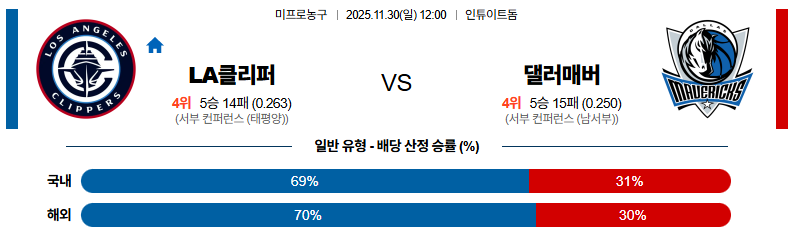 11월30일 LA클리퍼스:댈러스 NBA 분석 및 예측 스포츠중계:스포츠무료중계