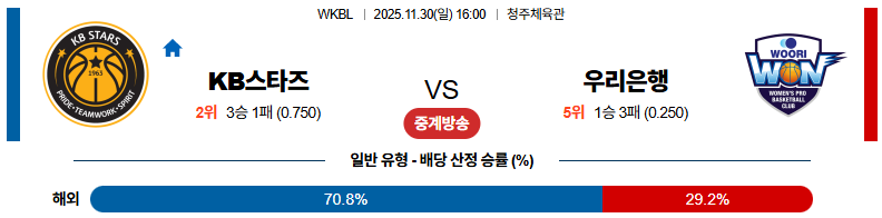 11월30일 KB스타즈:우리은행 WKBL 분석 및 예측 스포츠중계:스포츠무료중계