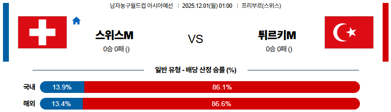 12월01일 스위스:튀르키예 농구월드컵예선 분석 및 예측 스포츠중계:스포츠무료중계