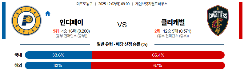 인디애나 대 클리블랜드 NBA 12월02일 맞대결 생중계, 스포츠중계, 스포츠분석