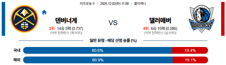 덴버 대 댈러스 NBA 12월02일 맞대결 생중계, 스포츠중계, 스포츠분석