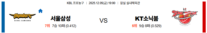 서울삼성 대 수원KT KBL 12월05일 맞대결 생중계, 스포츠중계, 스포츠분석