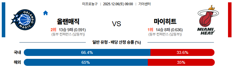 올랜도 대 마이애미 NBA 12월06일 맞대결 생중계, 스포츠중계, 스포츠분석