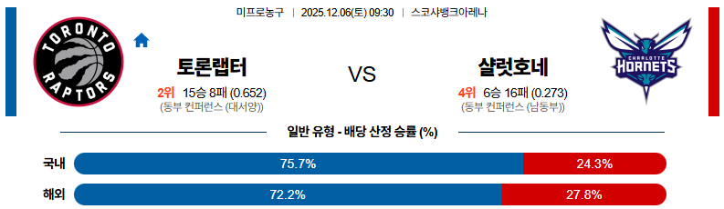토론토 대 샬럿 NBA 12월06일 맞대결 생중계, 스포츠중계, 스포츠분석