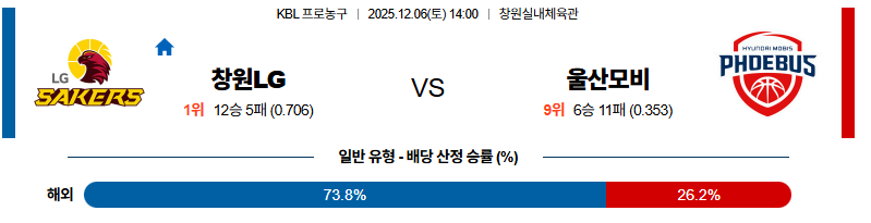 창원LG 대 울산현대모비스 KBL 12월06일 맞대결 생중계, 스포츠중계, 스포츠분석