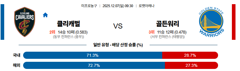 클리블랜드 대 골든스테이트 NBA 12월07일 맞대결 생중계, 스포츠중계, 스포츠분석