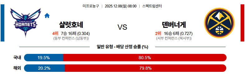 샬럿 대 덴버 NBA 12월08일 맞대결 생중계, 스포츠중계, 스포츠분석