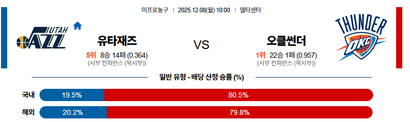 유타 대 오클라호마시티 NBA 12월08일 맞대결 생중계, 스포츠중계, 스포츠분석