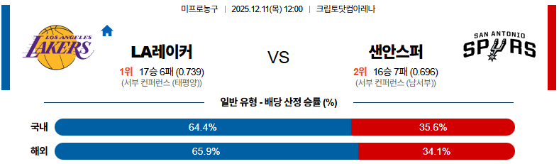 LA레이커스 대 샌안토니오 NBA 12월11일 맞대결 생중계, 스포츠중계, 스포츠분석