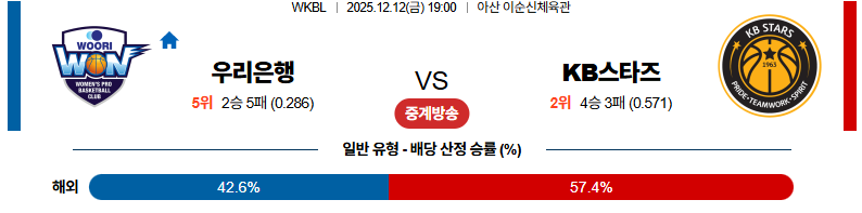 우리은행 대 KB스타즈 WKBL 12월12일 맞대결 생중계, 스포츠중계, 스포츠분석