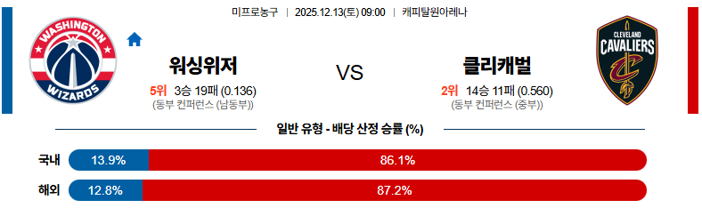 워싱턴 대 클리블랜드 NBA 12월13일 맞대결 생중계, 스포츠중계, 스포츠분석
