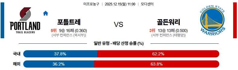 브루클린은 마이클 포터 주니어의 꾸준한 득점에도 불구하고 홈에서 2승 10패로 흐름이 좋지 않으며, 4쿼터 집중력 저하가 반복되고 있습니다. 반면 밀워키는 아데토쿤보가 결장 중이지만, 케빈 포터 주니어의 트리플더블과 쿠즈마, 포티스의 안정적인 득점 생산으로 보스턴을 잡아내며 반등에 성공하였습니다. 원정 6연패라는 부담이 있지만, 전력 구성과 최근 경기 내용 모두 밀워키 쪽이 더 우세해 접전 끝에 승리를 가져갈 가능성이 높습니다.