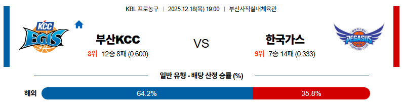 12월18일 부산KCC:대구가스공사 KBL 분석 및 예측 스포츠중계:스포츠무료중계