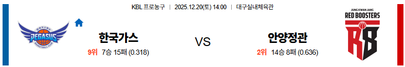 12월20일 대구가스공사:안양정관장 KBL 분석 및 예측 스포츠중계:스포츠무료중계