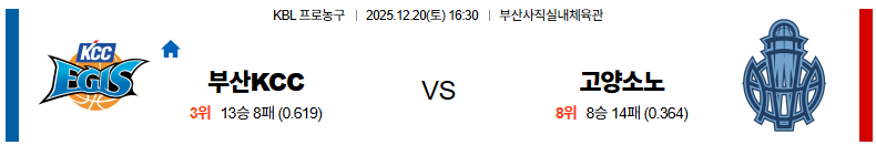 12월20일 부산KCC:고양소노 KBL 분석 및 예측 스포츠중계:스포츠무료중계