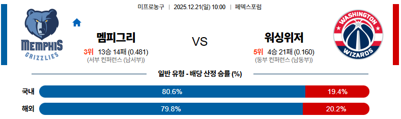 12월21일 멤피스:워싱턴 NBA 분석 및 예측 스포츠중계:스포츠무료중계
