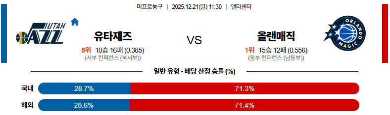 12월21일 유타:올랜도 NBA 분석 및 예측 스포츠중계:스포츠무료중계